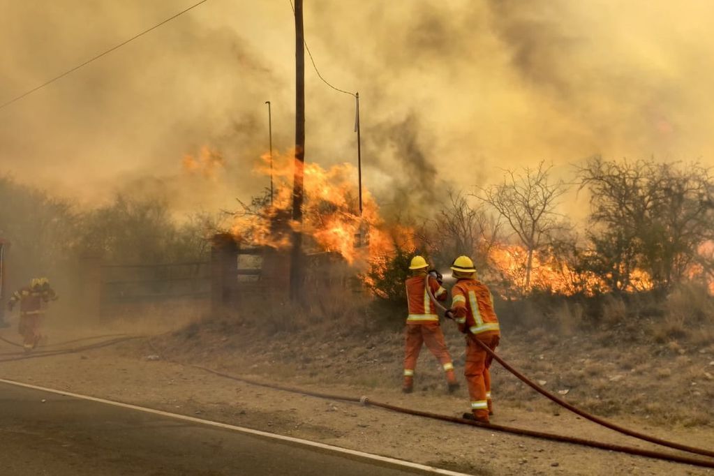 De esta manera las cuadrillas de bomberos trabajan en dos frentes, uno en Pozo del Algarrobo donde las llamas avanzan sobre el monte de una estancia, y otro en cercanías de Ojo de Agua donde existe mayor temor sobre la afectación de viviendas.