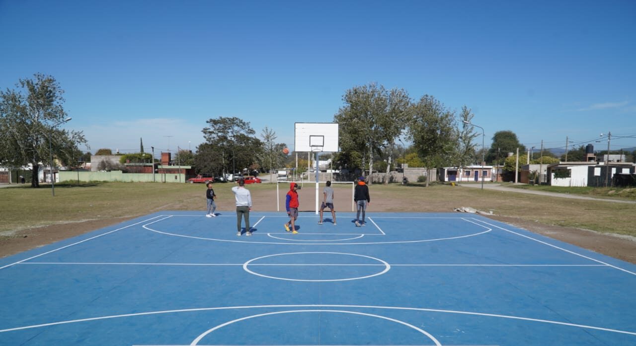 Con apuesta firme al deporte y a los espacios verdes y de recreación en la periferia, la Secretaría de Gobierno y Planificación construyó un nuevo playón polideportivo en barrio Parque San Juan. Esta cancha cuenta con las medidas reglamentarias y fue realizada en su totalidad por trabajadores municipales, de la Dirección de Obras Públicas.