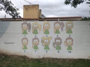 «El anterior mural tuvo mucha repercusión, pero nos marcaron que el abecedario no se encontraba en lenguaje de señas argentino. Respetamos esas críticas y lo aplicamos en los números«, le dijo a Radio Vibra Anahí Becerra, coordinadora de Callejeando. En la pared se encuentran representados los números del 1 al 10. Al igual que su antecesor, la idea principal del mural es acercar a los vecinos al aprendizaje de la dactilología.