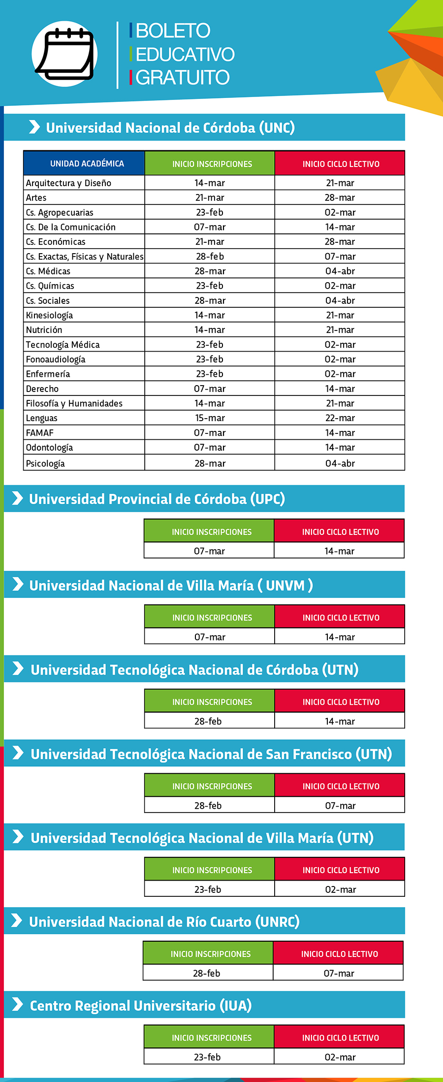 En cada caso, el inicio de las fechas de inscripción y de habilitación del beneficio depende del comienzo de clases de cada institución educativa. Cronograma nivel universitario: