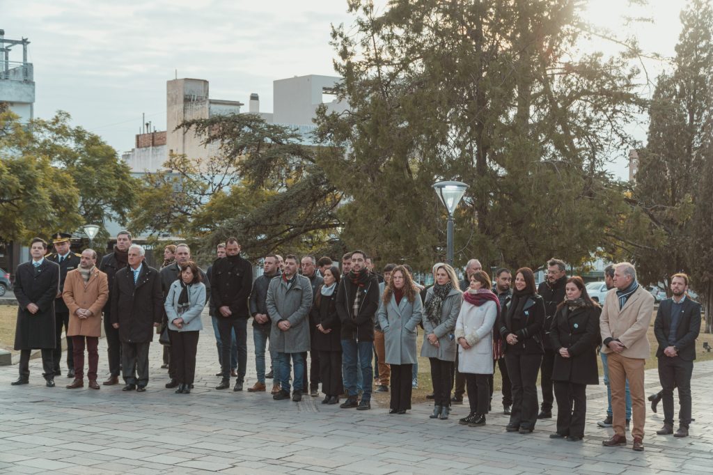 El acto contó con la presencia del Viceintendente Jorge de Napoli, autoridades judiciales, integrantes del Honorable Concejo Deliberante y Tribunales de Cuentas, funcionarios municipales y representantes de las fuerzas de seguridad y ex combatientes de Malvinas que portaron orgullosos nuestra enseña patria.