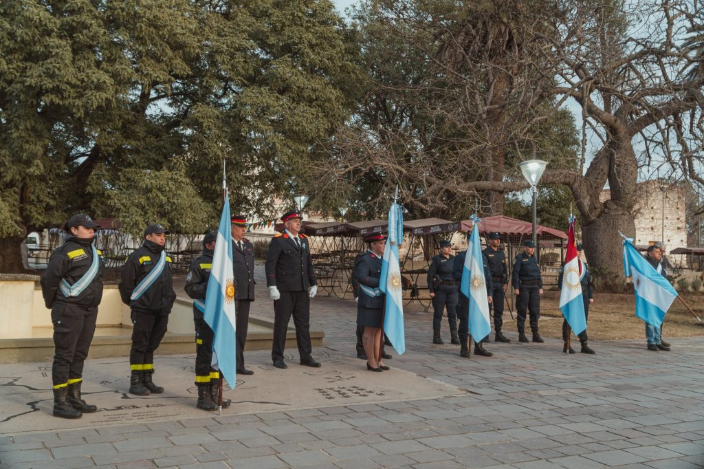 En su alocución, el viceintendente Jorge de Napoli invitó a reafirmar los ideales de libertad y soberanía, siempre en unidad y con el compromiso permanente de defender los valores patrios; en un emotivo acto cuyo momento fundamental fue el izamiento de la Bandera Nacional en la Plaza Manuel Solares. Para concluir el encuentro, integrantes del grupo folclórico «Confluencia» del Galpón Cultural Municipal «Mario Cornejo» ofrecieron sus danzas típicas para conmemorar esta importante fecha para nuestra nación.