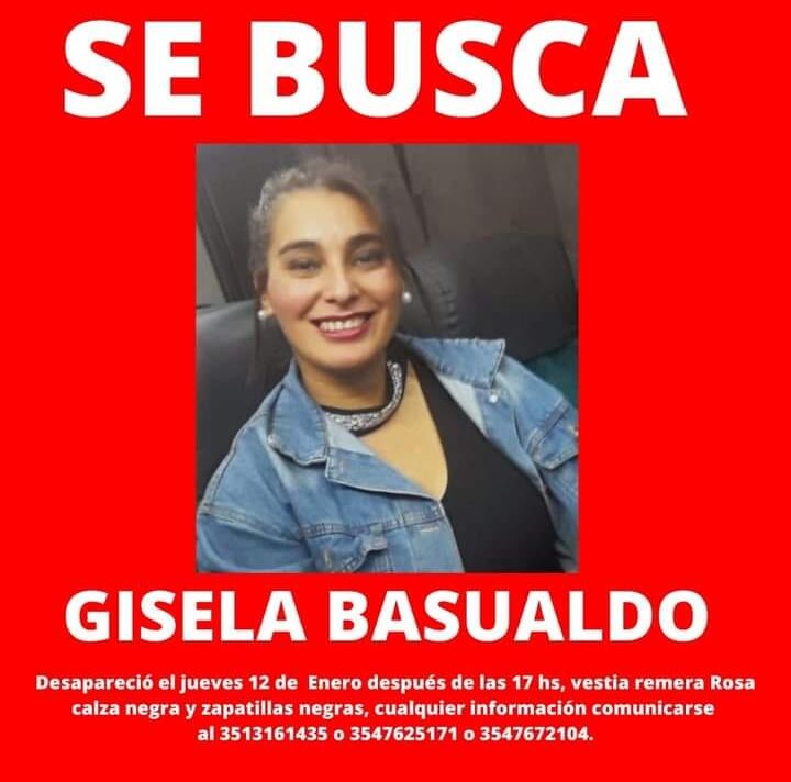 Gisela Basualdo había se encontraba desaparecida desde el pasado jueves 12 de enero y era intensamente buscada en la zona de Anisacate. Mediante un aviso publicado en redes su entorno solicitó colaboración para dar con el paradero de la mujer.