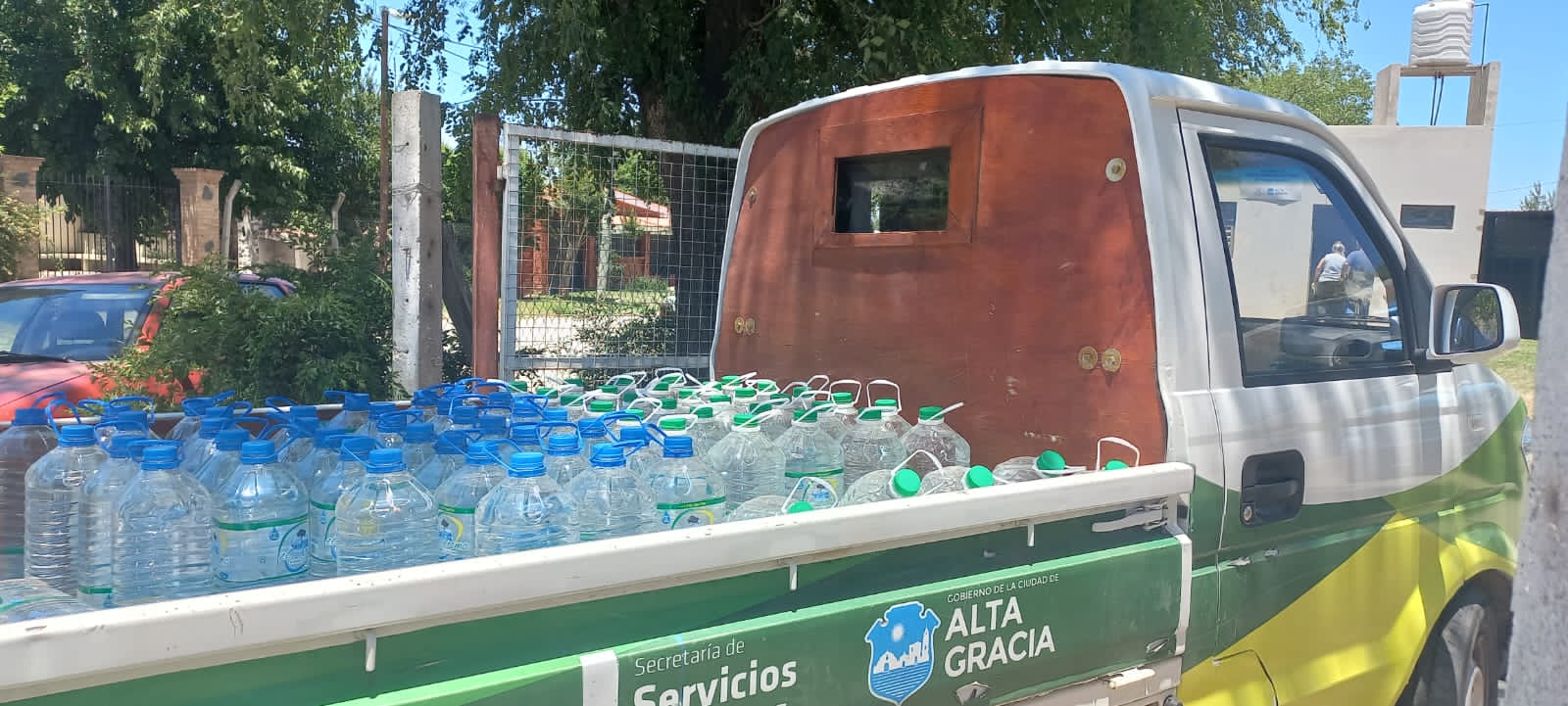 Mientras tanto, tres camiones de la Secretaría de Servicios Públicos y uno de COSAG se encuentran llenando tanques de agua. A su vez, dos vehículos distribuyen bidones de agua para los vecinos del sector en articulación, con el Centro Vecinal del barrio.