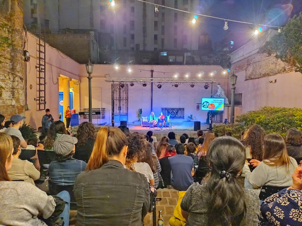 Ante un público expectante e intrigado, la charla comenzó entre risas y algunas que otra cervezas que daban vueltas entre los grupos que se habían formado para escuchar la charla. La temperatura ideal para estar al aire libre y sentarse sobre el piso del patio le dieron el tinte perfecto a una jornada más de la 36° edición de la Feria del Libro Córdoba 2022.