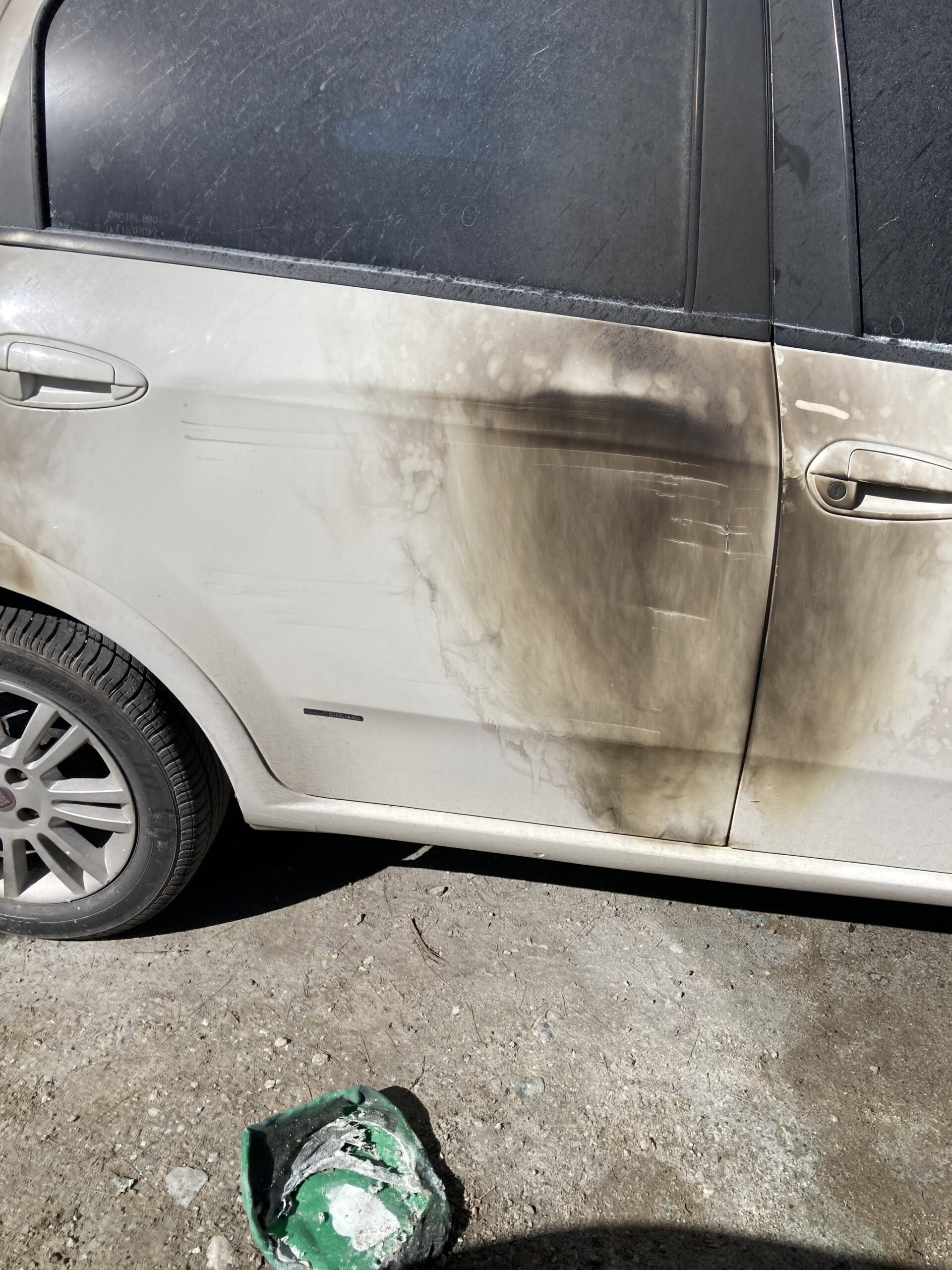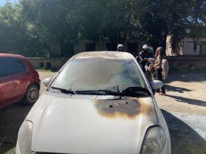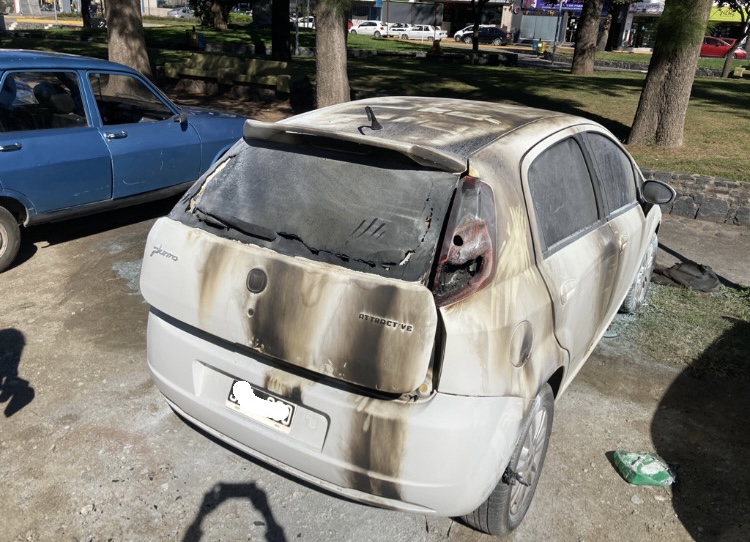 Cerca de las 8 de la mañana dos jóvenes prendieron fuego un Fiat Punto blanco que estaba estacionado en el estacionamiento del Paseo de Los Poetas. Trabajadores de la estación de servicio que está frente al lugar actuaron para sofocar el fuego.