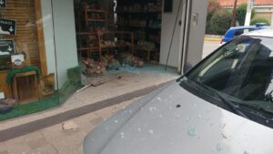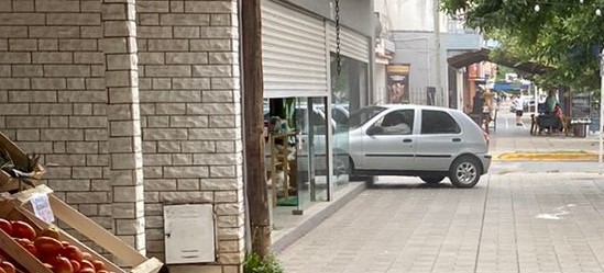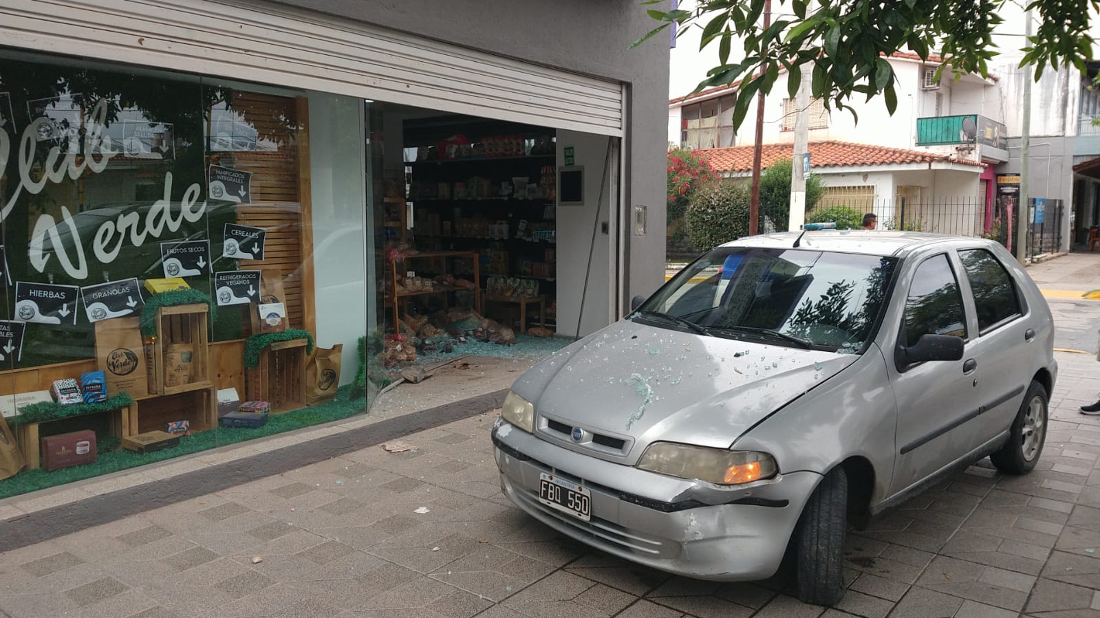 Una desgracia con suerte ocurrió durante este mediodía en la esquina de Cuyo y Avenida del Libertador. Alrededor de las 13, un Fiat Palio color gris que circulaba por Libertador perdió el control de su rodado, yendo a parar directamente contra la vidriera de un local comercial ubicado en esa intersección, rompiendo su vidriera y embistiendo una góndola que quedó totalmente destruida.