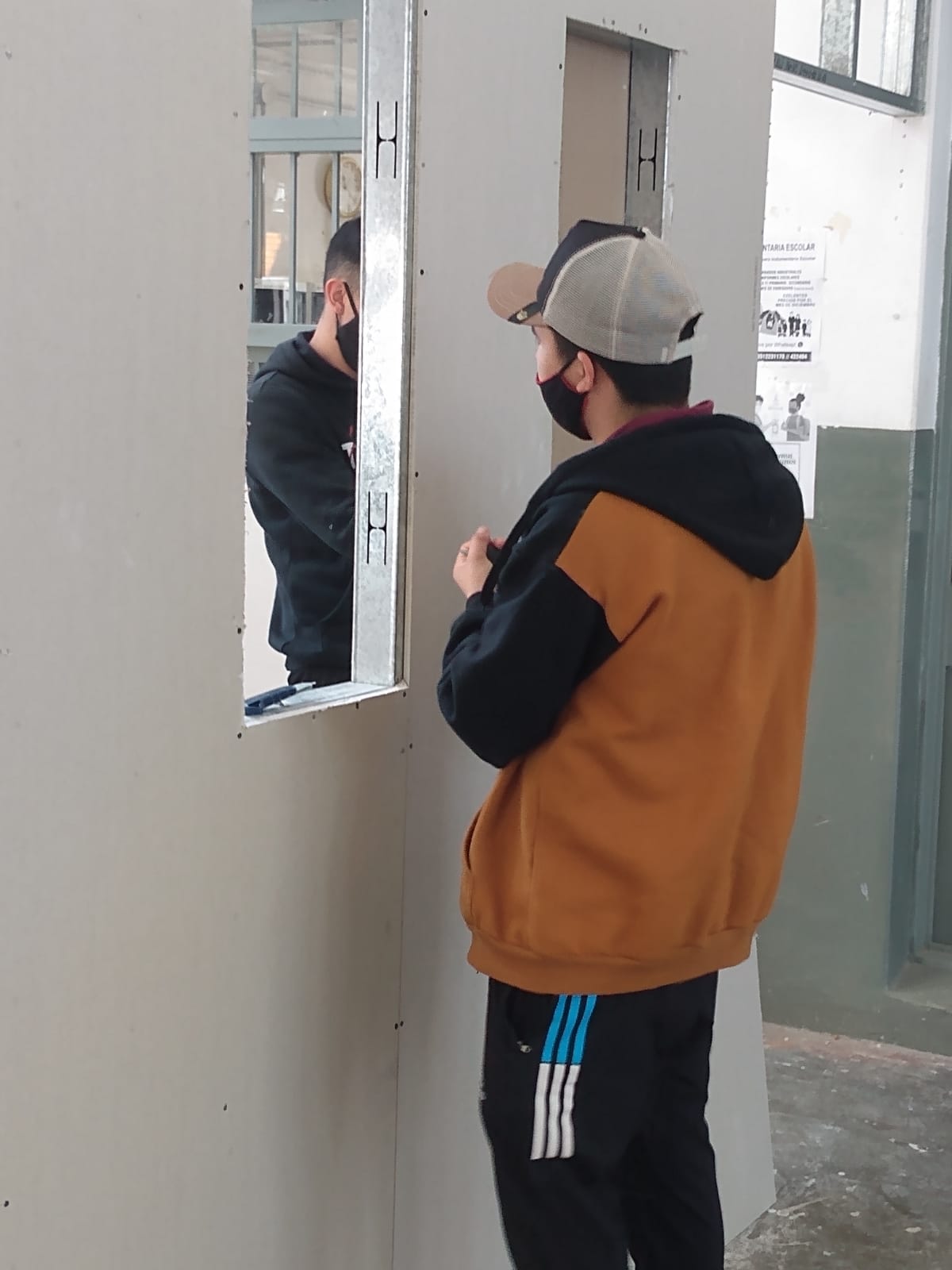 Para la construcción de la nueva sala, los alumnos trabajan en burbujas, repartiéndose las tareas de construcción en seco y las instalaciones eléctricas. Además, otros alumnos desarrollan otras actividades dentro del proyecto de empresa simulada, como panificación y fabricación de comestibles como helado y pastas.