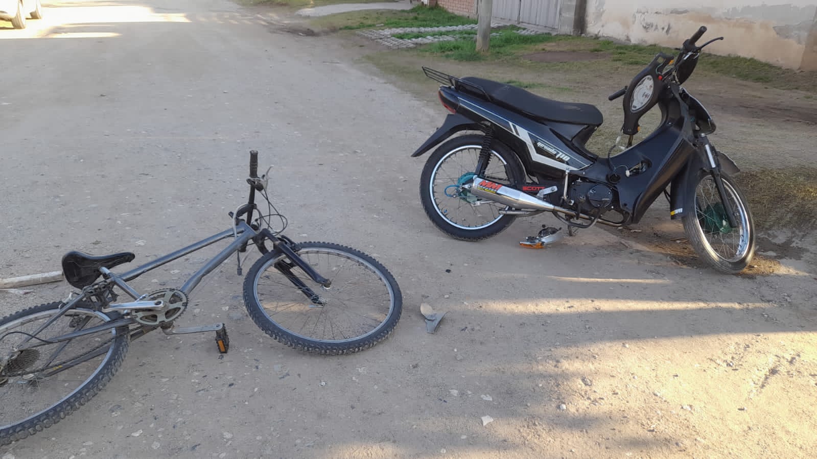 Juego de niños: chocaron una moto y una bici