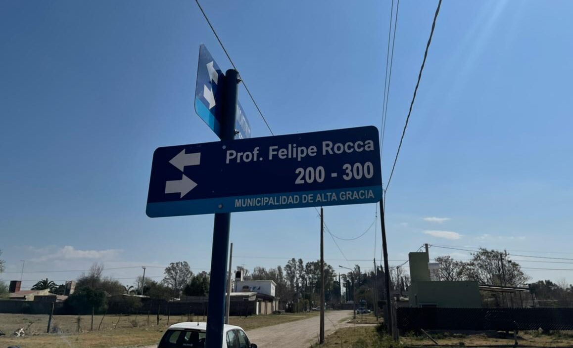 El homenaje al Profesor Felipe Rocca se propuso hace algunos meses atrás por su trayectoria en la educación que dejó una marca en sus alumnos, compañeros y amigos. A través de una ordenanza el Honorable Concejo Deliberante estableció que una calle de barrio Parque San Juan llevara su nombre y hoy es un hecho.