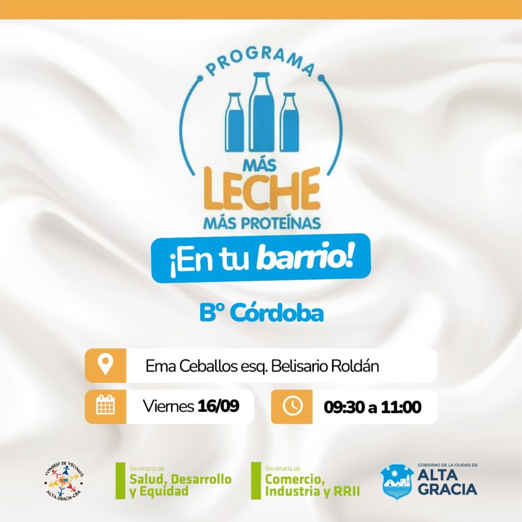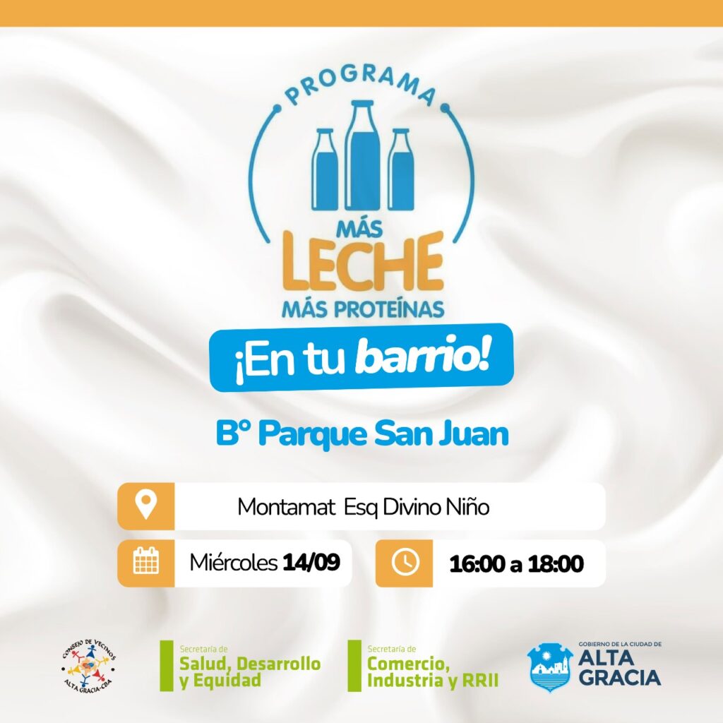 Este miércoles 14 el programa «Más Leche, Más Proteínas» llega a barrio Barrio Parque San Juan. El viernes estará en Barrio Córdoba. Para retirar los productos, las familias deben presentar su DNI.