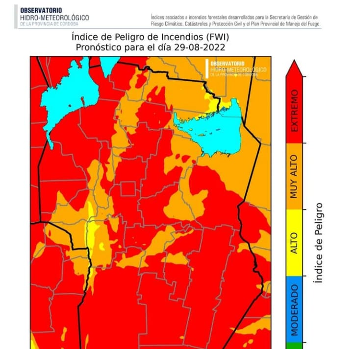 Bomberos de Alta Gracia informaron que el riesgo de incendios es extremo para este lunes. Es por esto que pidieron colaboración a los vecinos para prevenir cualquier foco.