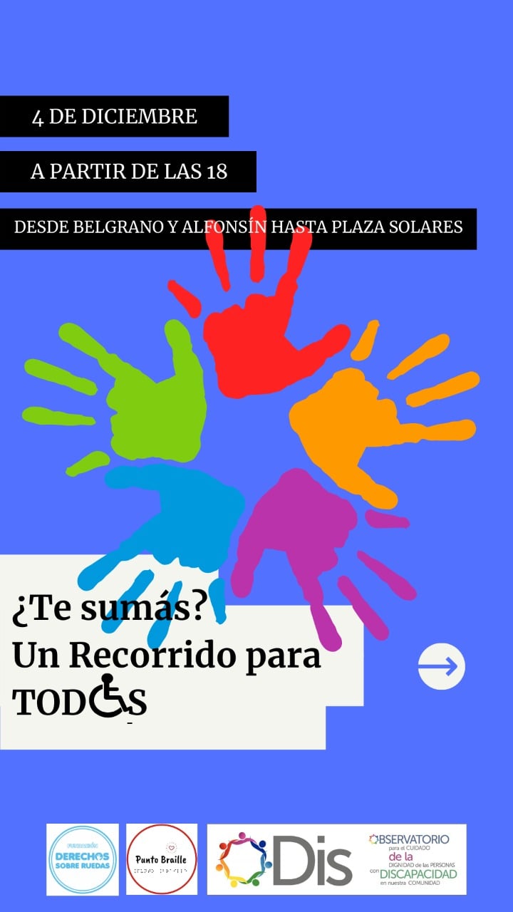 El próximo 3 de diciembre se conmemora el día Internacional de la Personas con Discapacidad. Por tal motivo, el Observatorio para el cuidado de las personas con discapacidad (ODis) realizará un recorrido por la zona céntrica de Alta Gracia. La actividad será el próximo sábado 4 desde las 18 horas.