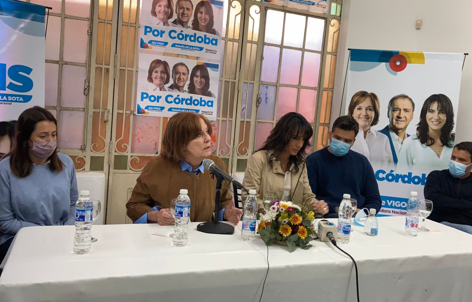 En primera instancia las candidatas atendieron a la prensa en la sede partidaria de Paraguay y Dino Carignani. Allí estuvieron acompañadas del Ministro Facundo Torres, de los intendentes de Alta Gracia y Despeñaderos, Marcos Torres y Carolina Basualdo, y del asesor del Gobernador, Hugo Testa.