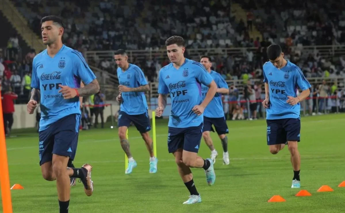 En los últimos trabajos tácticos, el DT había probado con Emiliano Martínez; Nahuel Molina, Cristian Romero, Nicolás Otamendi y Marcos Acuña; Rodrigo De Paul, Leandro Paredes y Alexis Mac Allister; Ángel Di María, Lautaro Martínez y Lionel Messi.