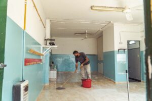 • Se llevó a cabo la limpieza en aulas con lavandina y cepillado, como así también se desarrollaron trabajos de pintura en las mismas.