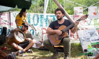 El folclorista pasó por la actividad realizada contra el avance de la nueva autovía. El acampe se mantiene firme desde el pasado 11 de marzo.