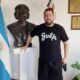 El líder de Don Osvaldo estuvo ayer en el museo junto a su hijo y su esposa. "Es una persona muy sencilla, tranquila y de bajo...