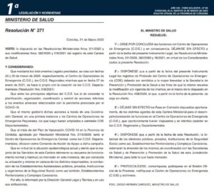 La resolución indica que el organismo en estos dos años de pandemia, “gestionó dichas acciones a través de una Coordinación General, en una primera instancia y los Centros de Operaciones de Emergencia Regionales, los que luego fueran ampliados a veintiséis COE Departamentales”.