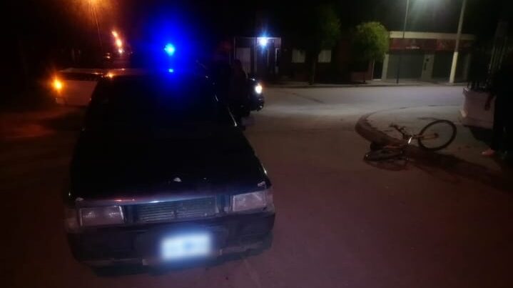 Anoche una joven que circulaba en bicicleta chocó con un auto Fiat Uno, en el que iba un chico de 25 años. El hecho se dio en la intersección de Malvinas Argentinas y Godoy Nuñez.