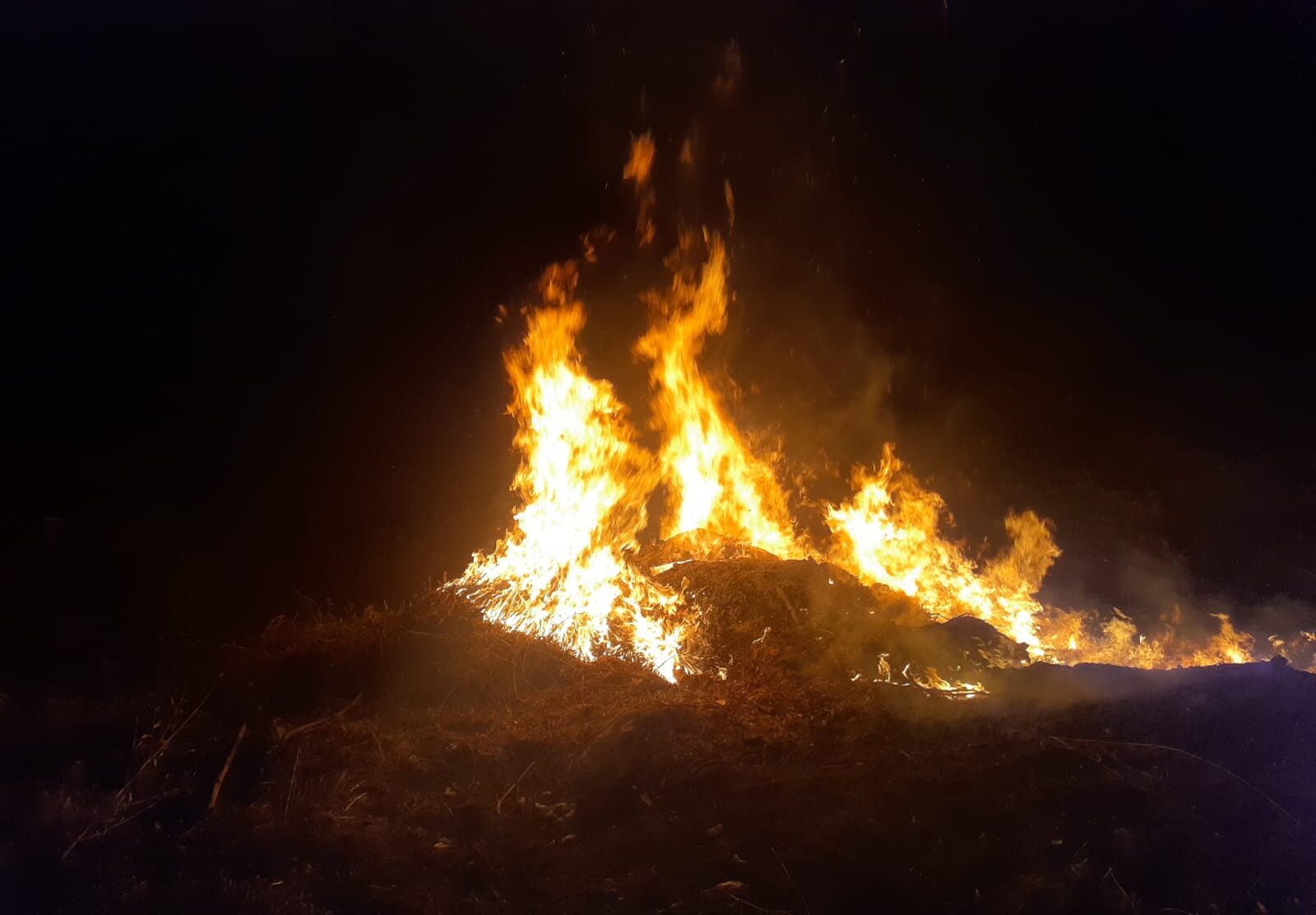 Este domingo por la noche se desató un foco ígneo en el depósito de ramas de Villa Los Aromos. Bomberos voluntarios y la Policía trabajaron en el lugar para sofocarlo.